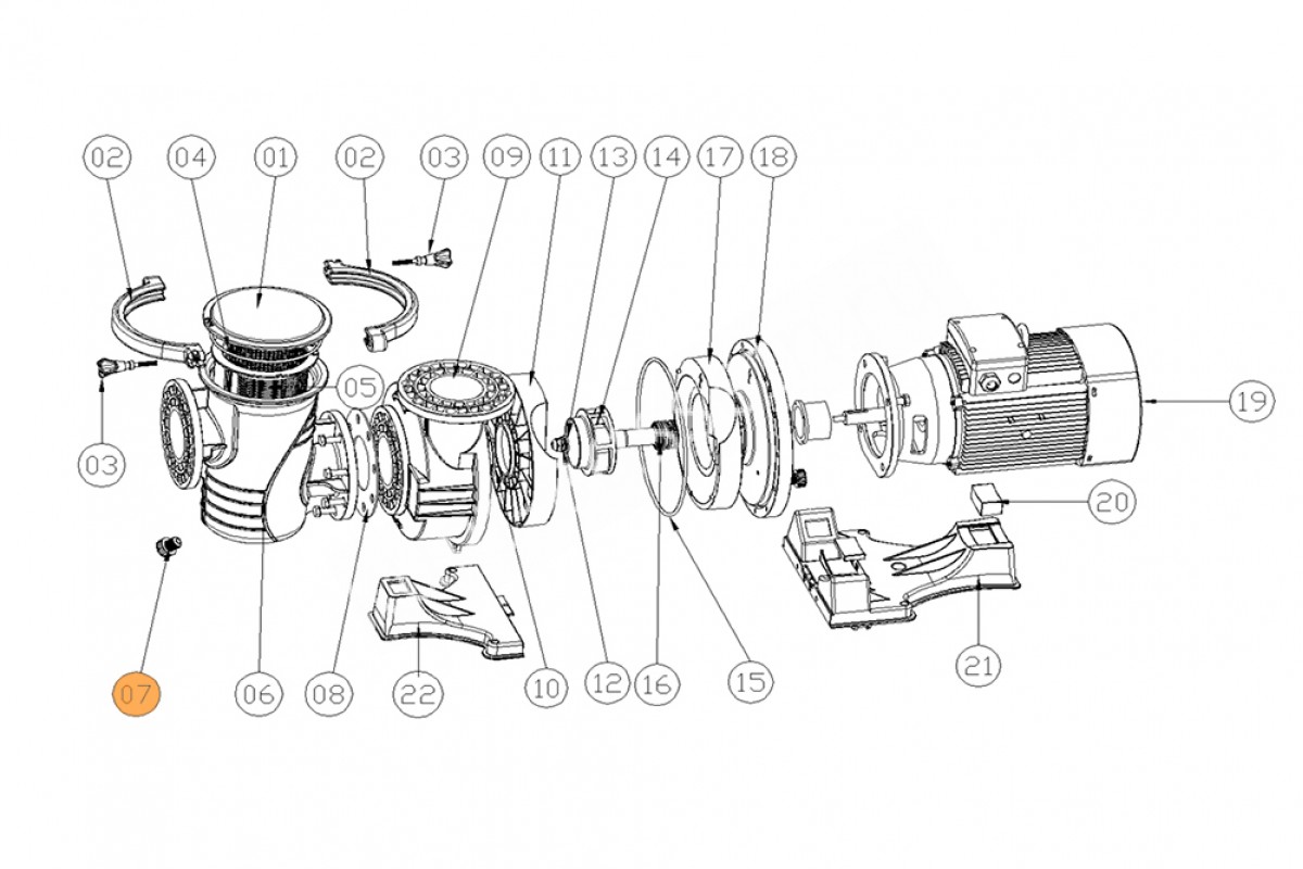 Поз. №07 - Винт сливной насоса Emaux для насосов APS550P / APS750P / APS1000P / APS1500P