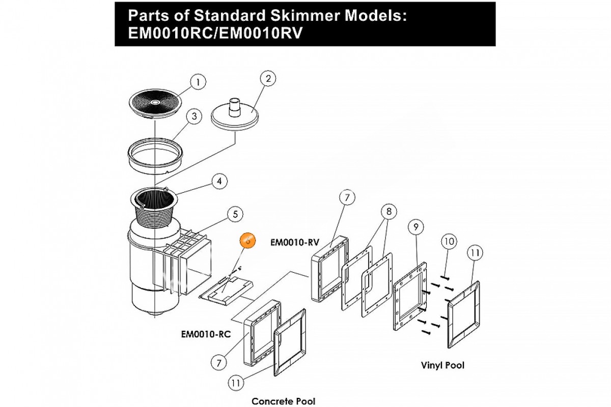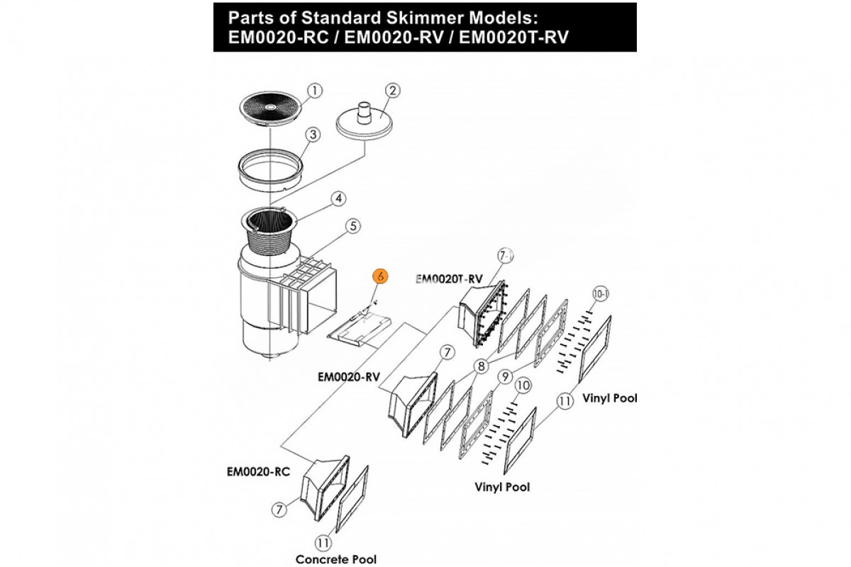 Поз. №6 - Заслонка плавающая скиммера Emaux EM0010/20 89150202/102/Е160103, Альтернативное название Шторка для скиммера Aquaviva Wide EM0020 (89150102)